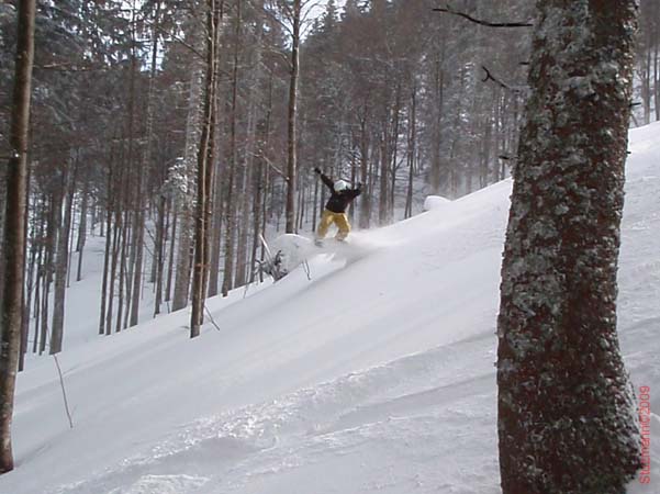 Ich kam den anderen, Peter, Dejan und Mario schon mit einem Riesengrinsen am Grafenmatt entgegen. Und mit ihnen wurde es dann hektisch. No Friends on Powderdays! Wir ripptendurch die Freshness rund um die Rothausbahn ein Hang nach dem anderen. Beim Ausstieg aus dem Lift lachte sich das Personal schon schlapp wenn wir kamen, weil es schon einen Ringkampf im Lift um die erste Line gab.