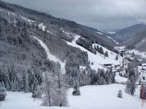 Wieder zurück aus Davos, machte mir auch der heutige Nebel keine Angst. Angst machten mir schon eher die Engländer mit Sommerreifen, oder der LKW mit seiner schlängelnden Fahrweise. Aber was motze ich den rum, wir haben jetzt Fasnacht, Tulpenferien in Holland und fetten Schnee, da muss man einfach mit solchen Beeinträchtigungen rechnen. Da Andrea heute wieder ihre geschmeidigen Beine verfügbar hatte entzogen wir uns dem ganzen Trubel und suchten die Powderflecken auf. Und siehe da wir waren fast immer die ersten. Klusenwäldle, Schlägelbach und Südhang. Nur in der Waldmeister waren schon 3 Boarder vor uns unterwegs.