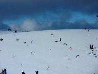 Schattig waren die -10,5°C am Titisee. Die -7°C am Grafenmatt hätte ich eigentlich auch als schattig eingestuft. Aber durch die trockene Luft und die ersten Sonnenstrahlen war die Temperatur überraschend angenehm. Vielleicht lags aber auch an der kuschligen Daunenjacke.In der Liftschlange stand man dann wieder im Schatten. Die Schlange wurde schnell länger und somit auch die Zeit im Schatten. Ich traf kurz Phil der den Park rippte, mir war aber definitiv schon zu voll. Also Brett das Brett getauscht und den 12,5er auf den Rücken und ab in die Sonne. Der Wind war an der unteren Grenze für den 12.5er. Ich kam mir auch ganz mickrig vor, da fast nur dicke Flysurfer unterwegs waren. Aber der Montana schlug sich gut und zog mich ohne Probleme auf den Mittelbuck. Über Nacht gab es nochmal 5cm Neuschneeauflage und obwohl die Tage zuvor recht warm waren, war der Schnee immer noch pulvrig und weich. Die zwei Abstürze, als der Wind in den Böenwirbeln zusammenklappte verliefen somit auch total glimpflich. Der Wind pendelte zwischen 4 und 5 Windstärken, abhängig davon ob gerade wieder eine Wolke über das Massiv zog. Die guten Bedingungen lockten natürlich nicht nur mich auf den Berg, als ich wieder Richtung Tal fuhr, waren schätzungsweise 40-50 kiter zwischen Seebuck und Feldberg unterwegs. Das ging schon soweit, dass man sich zum Springen einreihen musste. Mehr verträgt der Spot nicht wirklich. Ich bin gespannt wie das noch weitergeht, den täglich werden es mehr Kiter.