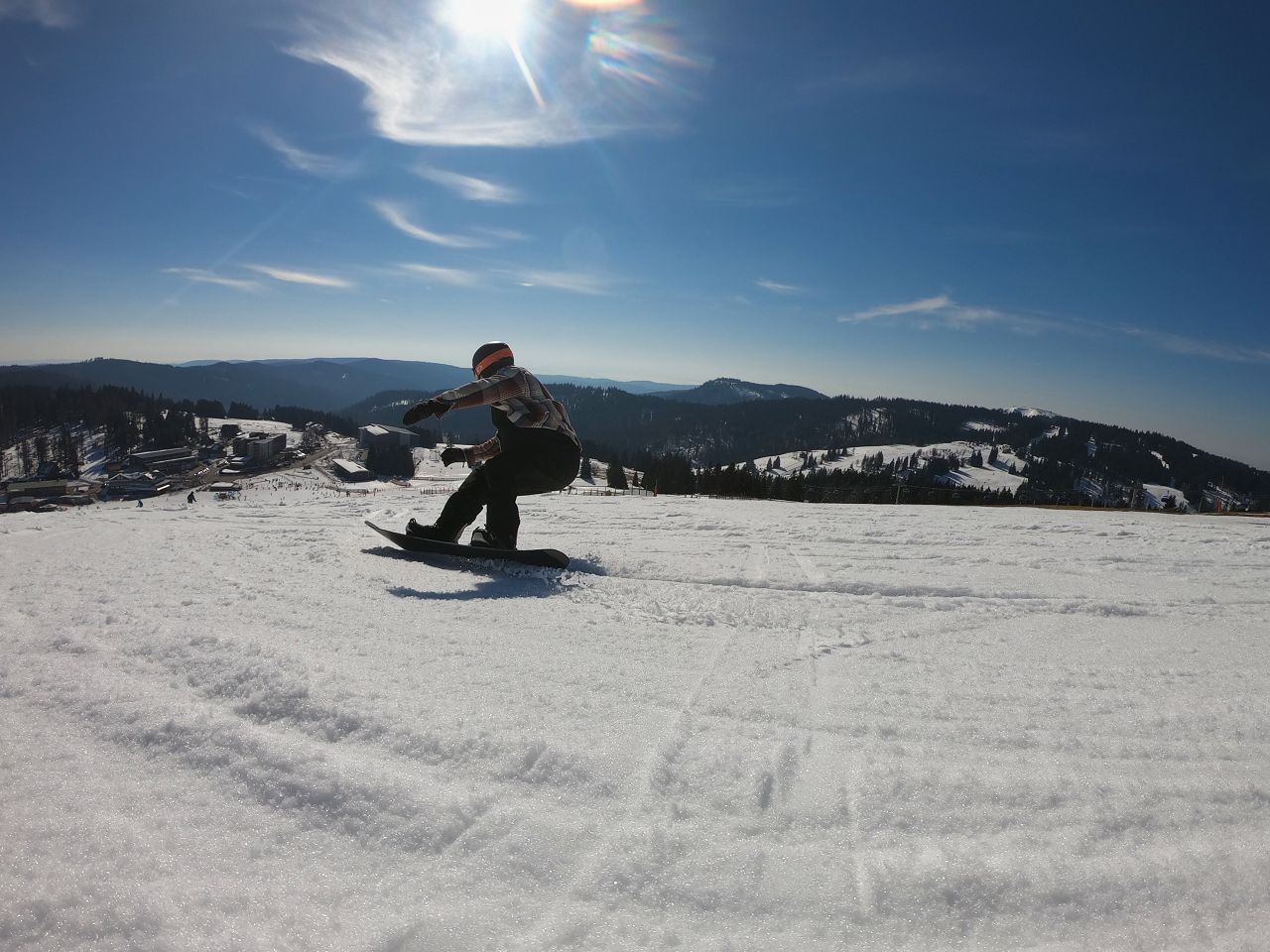 Was für ein Lärm am frühen Morgen. Und damit meine ich nicht die markerschütternden Geräusche die entstehen, wenn vor allem Snowboarder über eine bockelharte Piste scheppern. Nein, der Lärm kam von den ganzen Vögeln, die schon beim Sonnenaufgang die wildesten Geschichten erzählen. Vielleicht sind das Geschichten von einem Boarder, der zu erst alleine auf den Berg lief und mit diesen markerschütternden Geräuschen anfing. Der dann aber nicht alleine blieb. Nachdem der Boarder seine Softshell gegen ein Flanellhemd getauscht hatte, begleiteten ihn zwei weitere Boarder welche die gleichen Geräusche machten. Doch obwohl immer mehr diese Boarder und Skifahrer auf die Pisten kamen, wurden die Geräusche mit der Zeit leiser. Das lag wohl am Schnee, der in der Sonne langsam auftaute. Als der Boarderhaufen dann auf 6 Personen angewachsen war, wurde der Schnee schon recht feucht es zischte nur noch ganz leise, als die ganze Horde vorbeifuhr. Und womöglich dachten sich die Vögel, der Schnee wäre vielleicht sogar zu feucht geworden, denn auf einmal war dieser Boarderhaufen weg. Sie können ja nicht wissen, dass Boarder auch ganz gerne mal auf der Südhangterrasse in der Sonne sitzen. Aber vielleicht finden sie das ja morgen heraus und erzählen dann neue Geschichten.