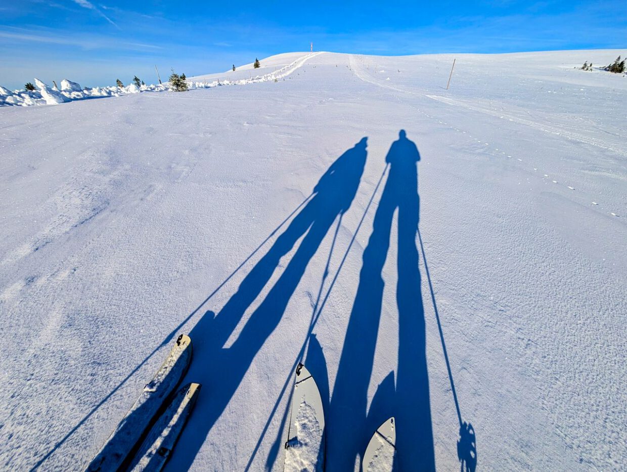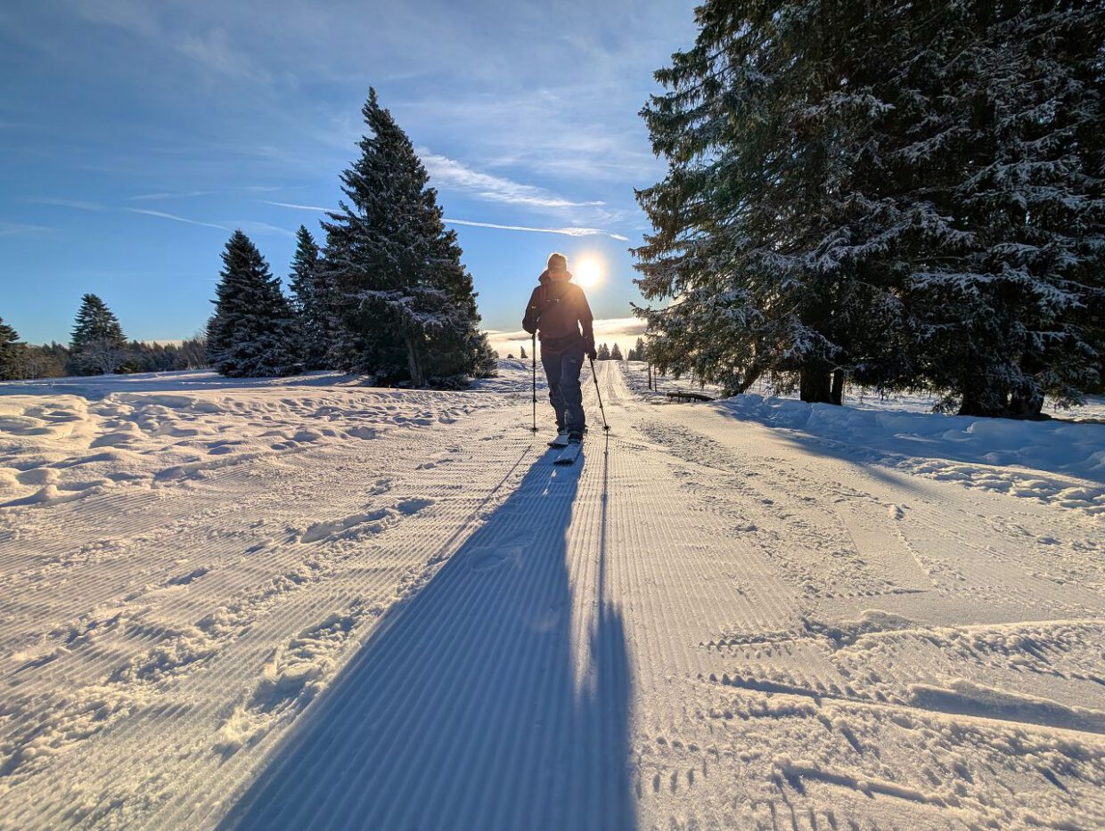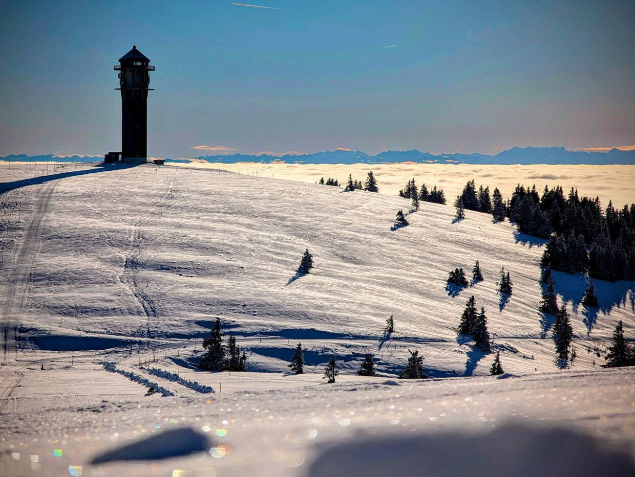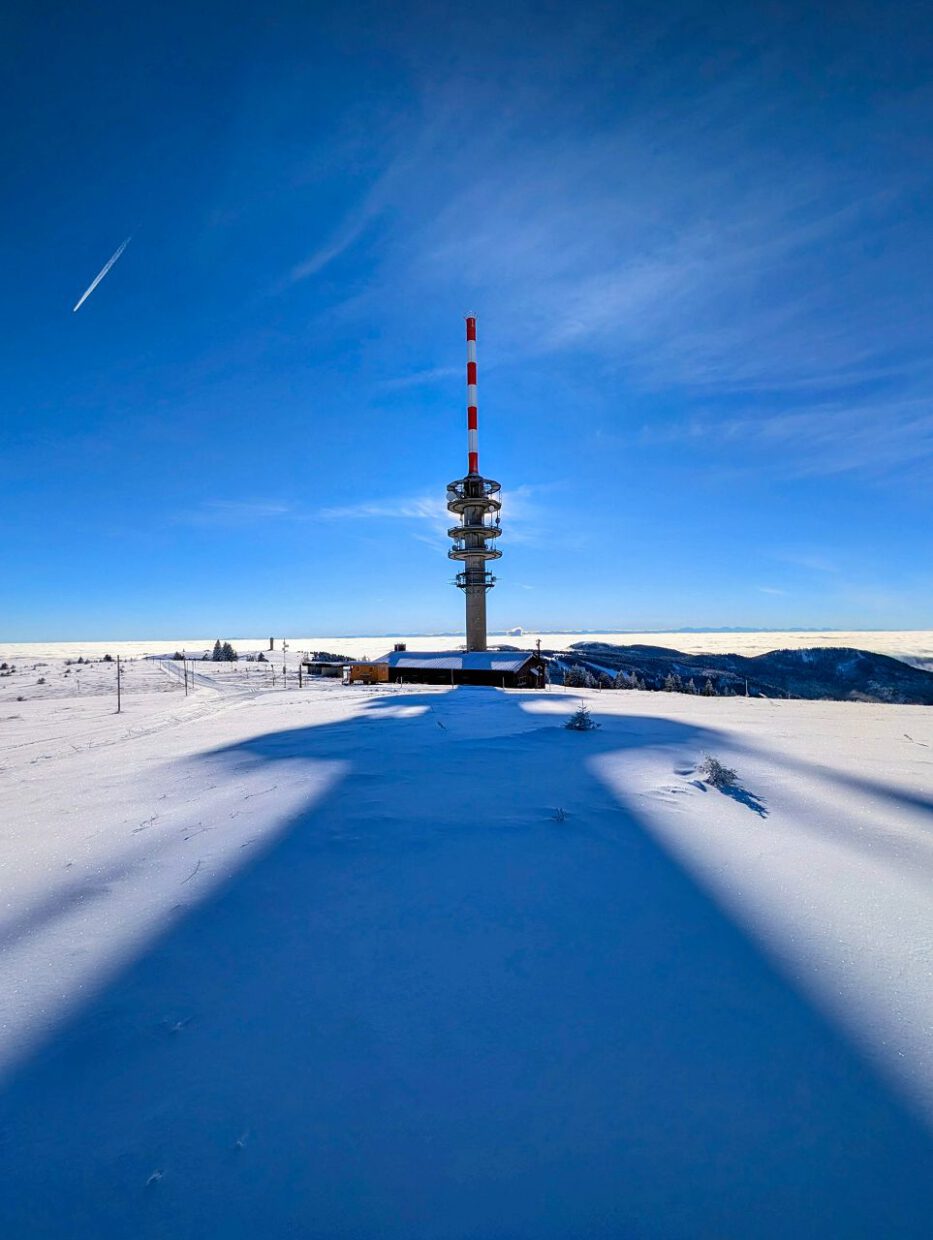 Heute ging das erste Türchen des Adventskalenders auf. Und welche Geschenke kommen in der weihnachtlichen Zeit besonders gut an? Natürlich, Kosmetikprodukte. Der Inhalt hinter dem ersten Türchen des Feldberger Adventskalenders war dann auch gleich was zum Aufhübschen. 3 Zentimeter Puder mit allerlei Glitzer drin. Und drumherum wurde ordentlich mit Wattebäuschen geworfen. Nachdem es gestern zum Teil noch Bindfäden geregnet hatte, fühlte es sich heute bei -6°C gleich wieder so richtig nach Winter an. Der 6er Sessel lief nicht, dafür liefen wir. Ausgiebig über den Feldberg, den Seebuck und genossen die ganz besondere Stimmung. Alles weiss mit dem tollen Glitzern der Schneekristalle, nur vereinzelten Menschen, kein Wind und die herrlich wärmende Sonne. Von mir aus könnte jedes Türchen solch tolle Tage bringen.