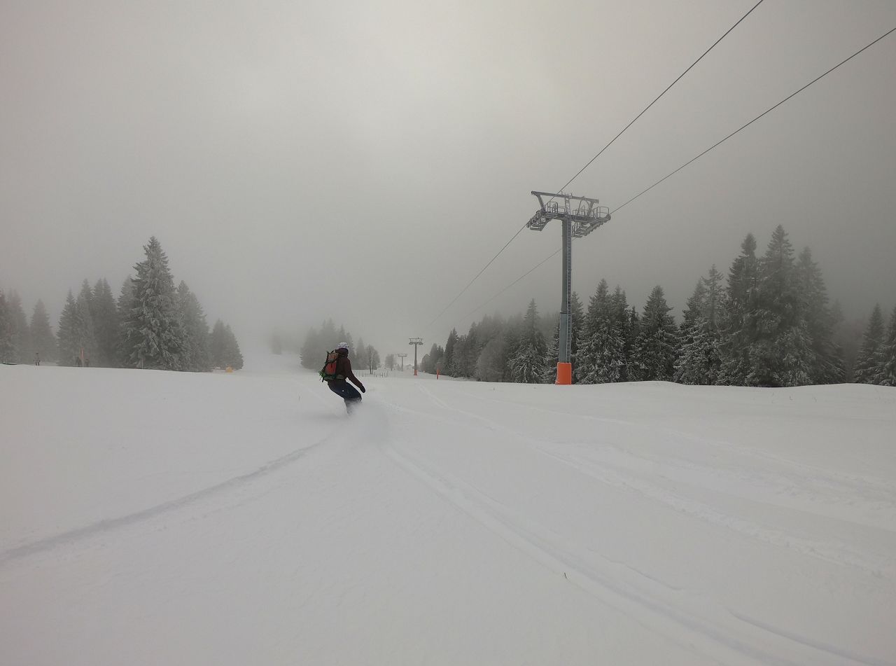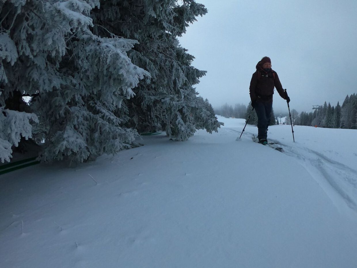 Wie lange haben wir auf die Rückkehr des Winters gewartet. Nachdem im November schon vielversprechendes passiert ist, zerrte der Dezember an unseren Nerven. Genauso wie die Schneevorhersage für diese Tage. Vor einer Woche standen noch bis zu 50cm Neuschnee in den Prognosen. Die schrumpften Tag für Tag dann auf 5 Zentimeter. Als es dann gestern Abend gar nicht mehr aufhören wollte zu schneien, war klar, der Winter feiert ein Comeback. Heute Morgen sind wir schließlich durch 15 cm hochgelaufen. Nicht gerade „groundless“, aber besser als wieder wie an den vergangenen Tagen mit dem Bike durch die Kälte zu fahren. Und letztendlich konnten wir sogar noch ein bisschen Seniorenpowdern. Nicht zu wild, nicht zu steil und nur ein bisschen mit den Beinen wackeln. Aber immerhin Powder. Von Westen grüßen aktuell schon die nächsten Schneewolken, vielleicht geht es auch morgen wieder abseits. Ganz Altersgemäß.
