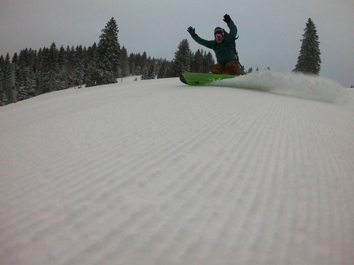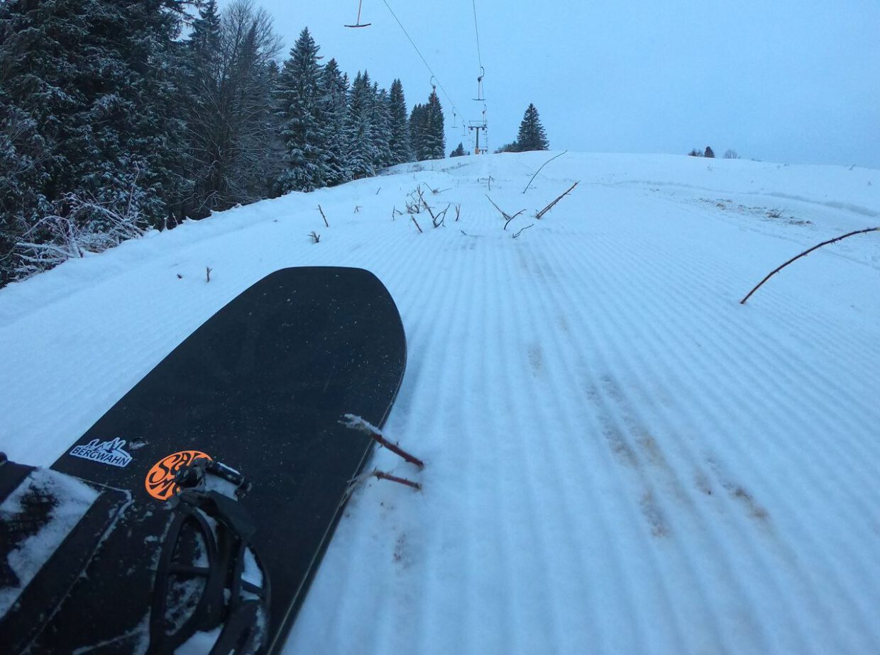 Damit besteht wieder eine Verbindung zwischen den Bereichen Seebuck, Grafenmatt und Fahl. Die Schneedecke ist allerdings noch sehr dünn, weshalb man besser nicht mit dem nagelneuen Board unterwegs sein sollte. Mit einer vorsichtigen Spurwahl kommt man jedoch auch ohne bleibende Schäden durch. An den Zeller Hängen hatte ich sogar noch das Vergnügen, ein paar Turns auf völlig unverspurten Pisten zu ziehen – ein klarer Vorteil der geringen Besucherzahl.