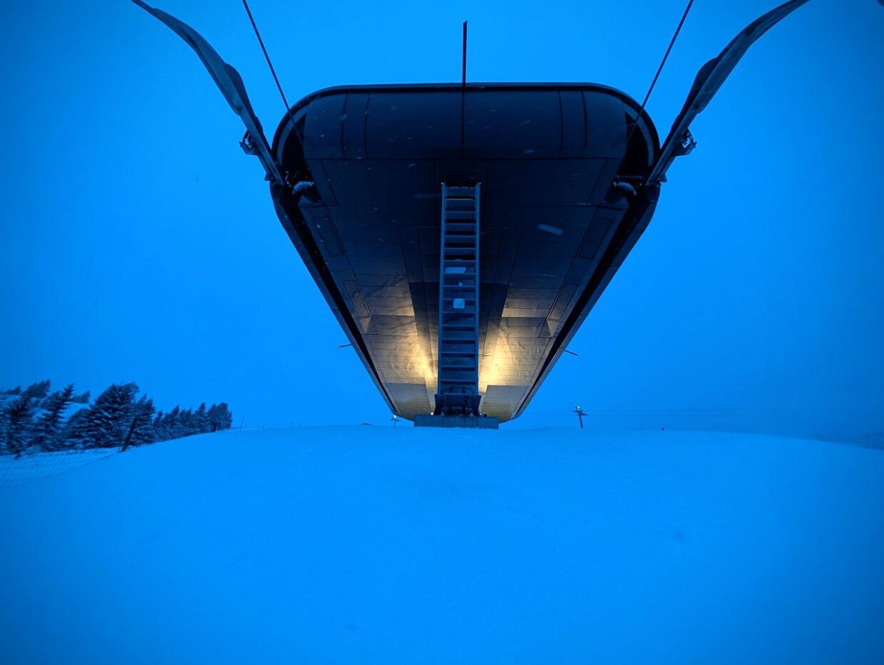 Beim Heißgetränk im Südhang wollten wir beinahe noch nachfragen, ob wir uns im Wochen- respektive Feiertag vertan hatten. Weder beim Aufstieg noch auf dem Parkplatz begegneten wir den Menschenmassen der vergangenen Tage. Lediglich am Zeiger herrschte eine ungewohnte Betriebsamkeit. Die Piste war präpariert, und wie ein Alienraumschiff strahlte die Bergstation in der Dunkelheit.
