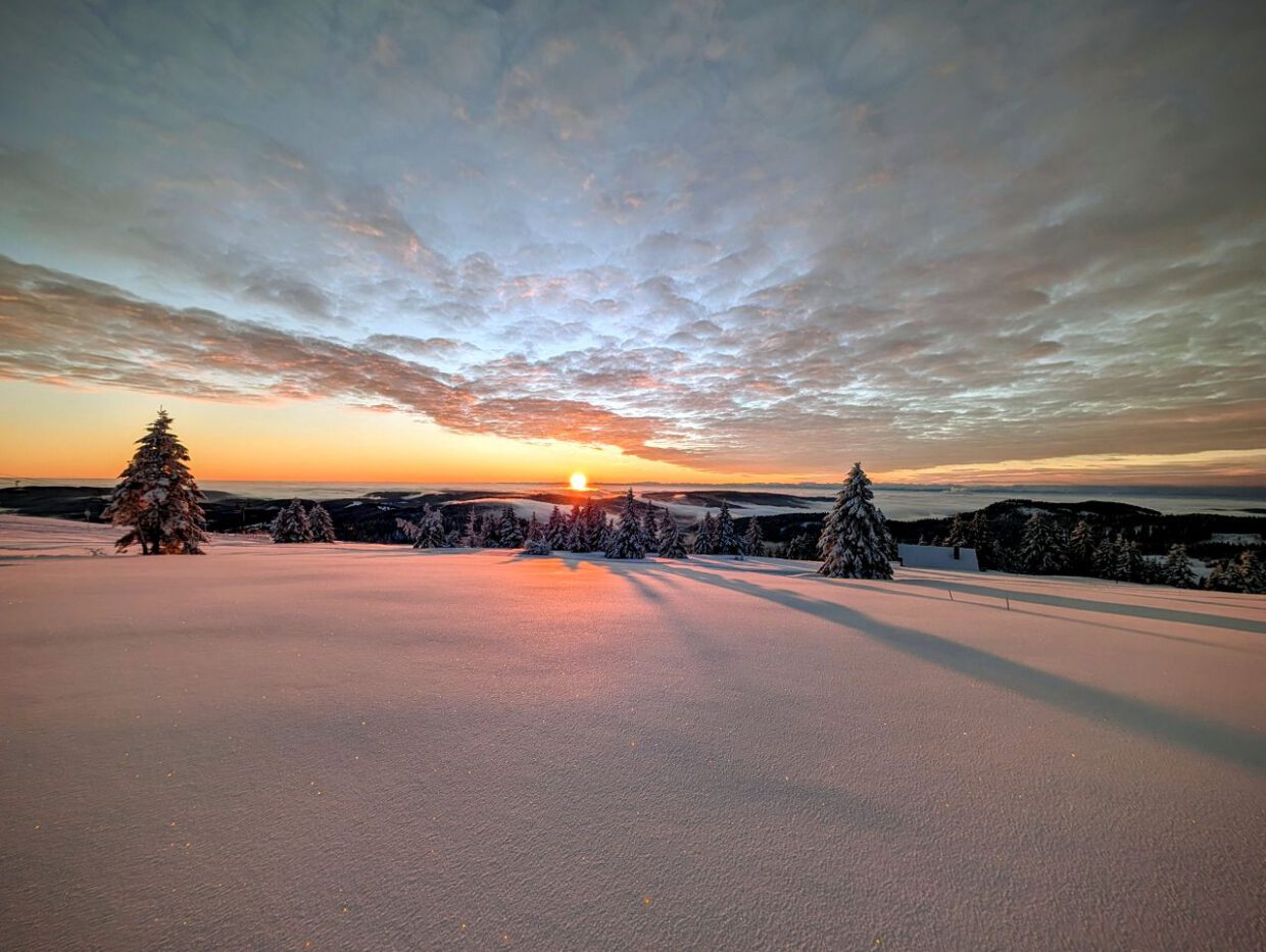 Nach den Wettervorhersagen der letzten Tage war mir Anfang der Woche eigentlich schon klar, dass ich heute wohl frei machen sollte. Als das entschieden war, wurde ich auch prompt unter Druck gesetzt: Wenn wir schon hochlaufen, dann bitte auch eine schöne Sonnenaufgangstour vor der aufziehenden Schneefront. Bestellt und prompt geliefert.