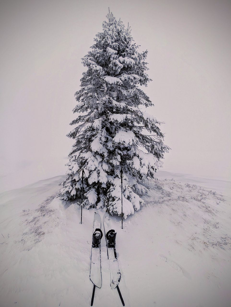 Das Wetter fühlte sich heute deutlich mehr nach Januar an als nach einem frühlingsgetränkten Märztag. Auch die Schneelage war in dieser Saison meist schlechter als heute. Sogar unser Bäumchen hat wieder etwas Gewicht – in Form von Schnee – zugelegt.