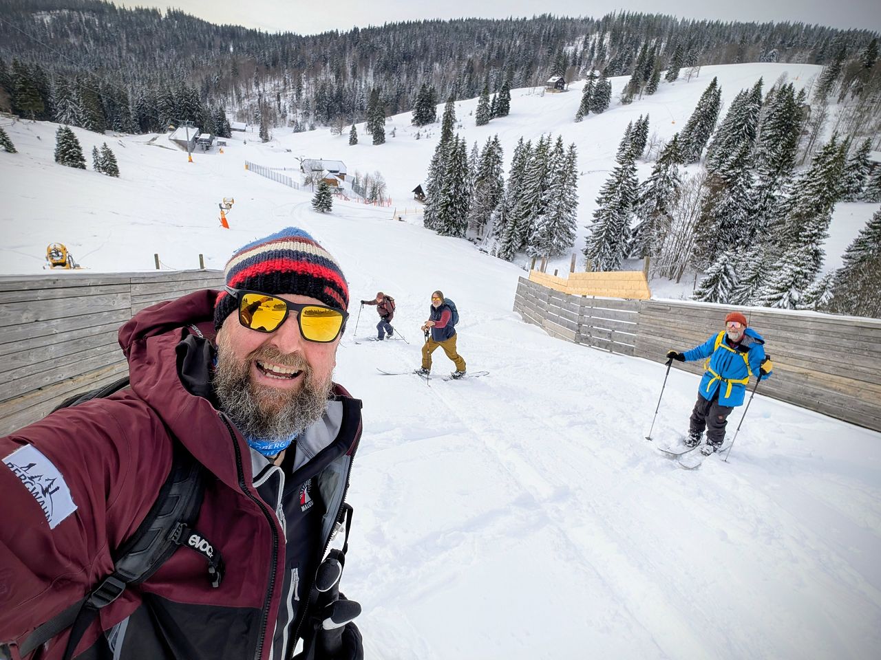 Danach war ich doch tatsächlich kurz orientierungslos. Mein Auffellplatz war Richtung Zeiger, die anderen standen am Zeller 2. Kein Wunder: Wir machten uns daran, zum ersten Mal die Skibrücke von unten zu überqueren. Ein hervorragender Übungsplatz für Spitzkehren.
