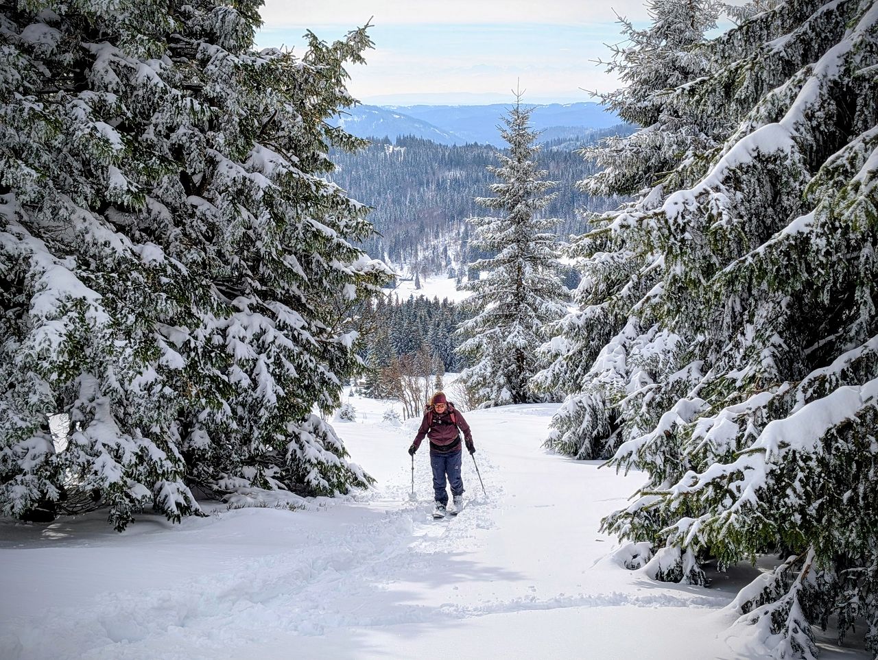 Und weil wir so schön im Flow waren, sind wir dieses Mal ganz romantisch den Umweg durch den Wald nach oben gestapft. Zumindest war unser Abfellplatz dann wieder einheitlich – aber das ist den geneigten Lesern ohnehin klar.