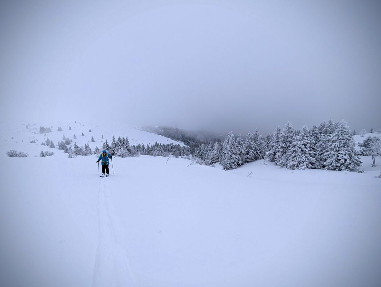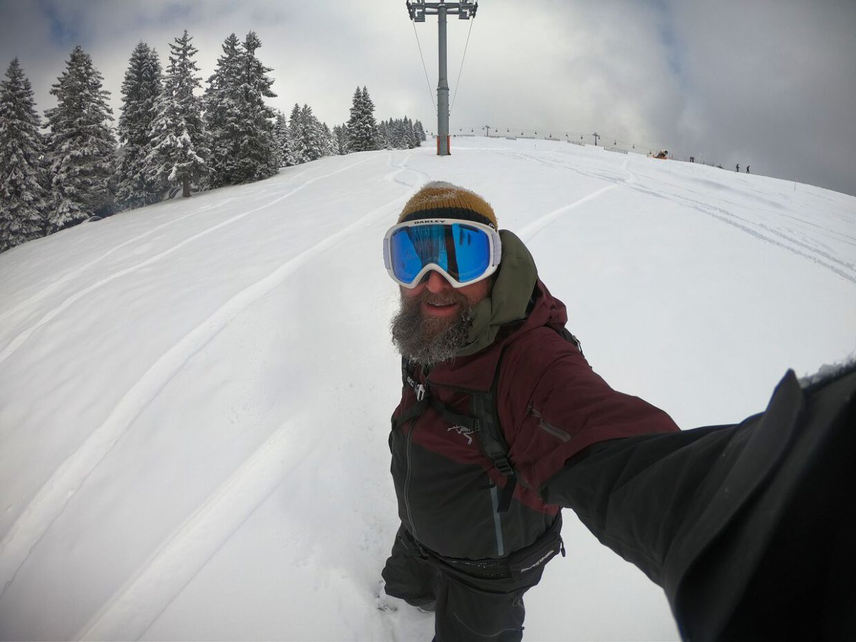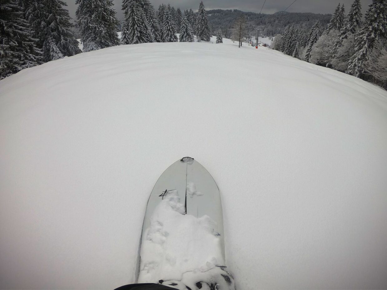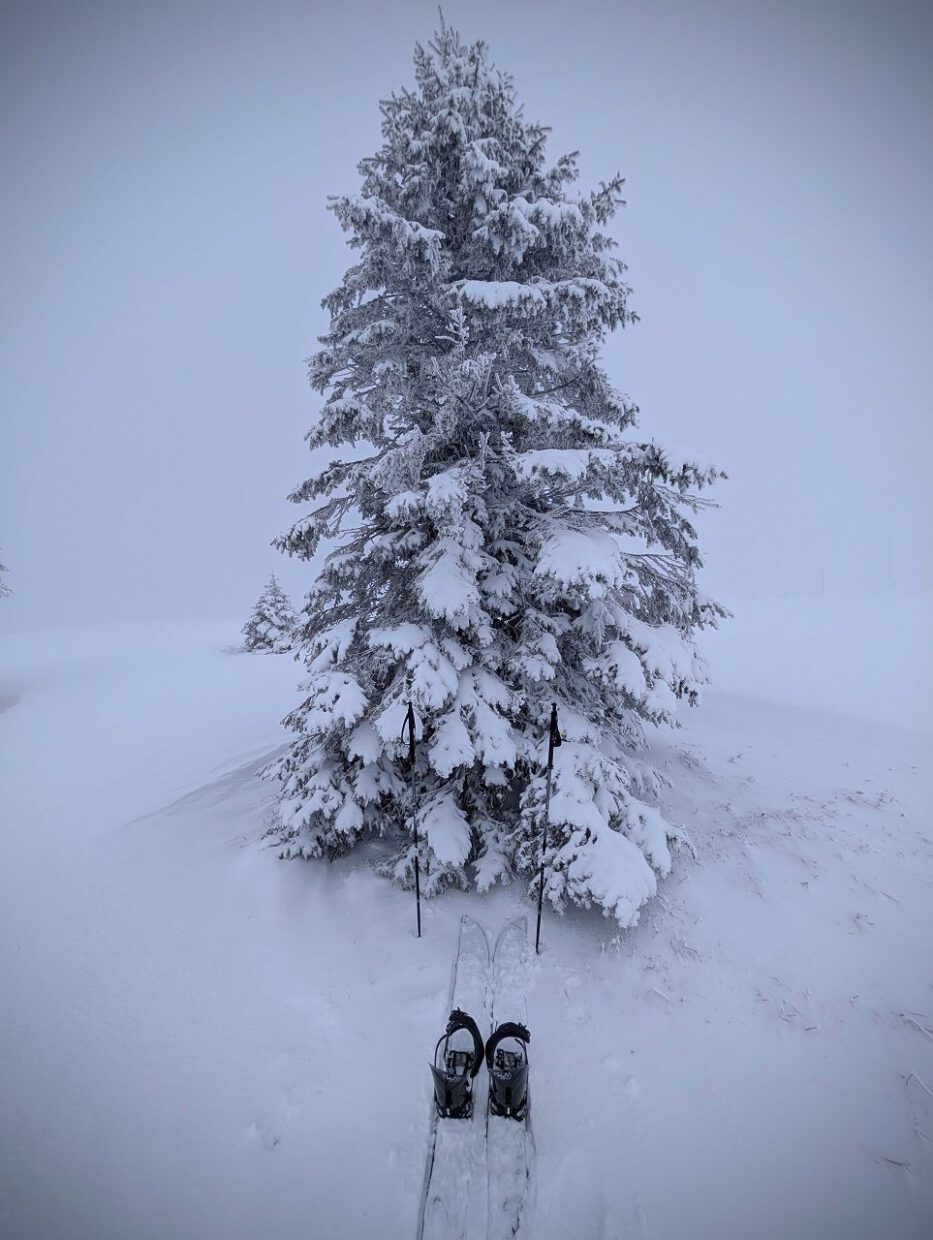 Heute begann der Tag mal wieder mit dem Splitboard. Zuerst ging es natürlich zum Lieblingsabfellbaum. Und weil der Aufstiegsbereich am Zeiger schon etwas verspurt war, sind wir zunächst im unverspurten Powder zum Seebach abgefahren.