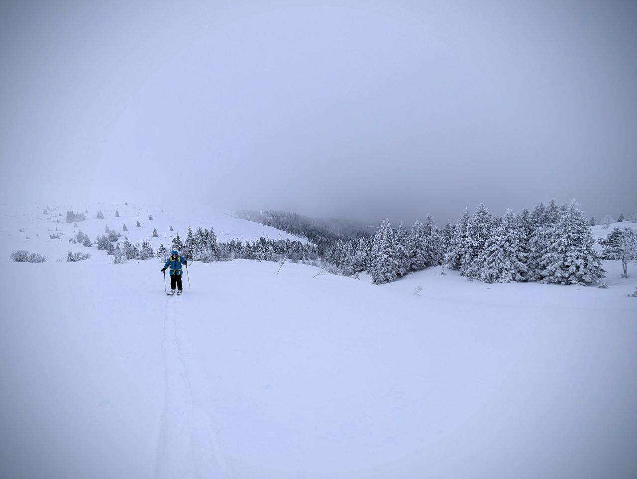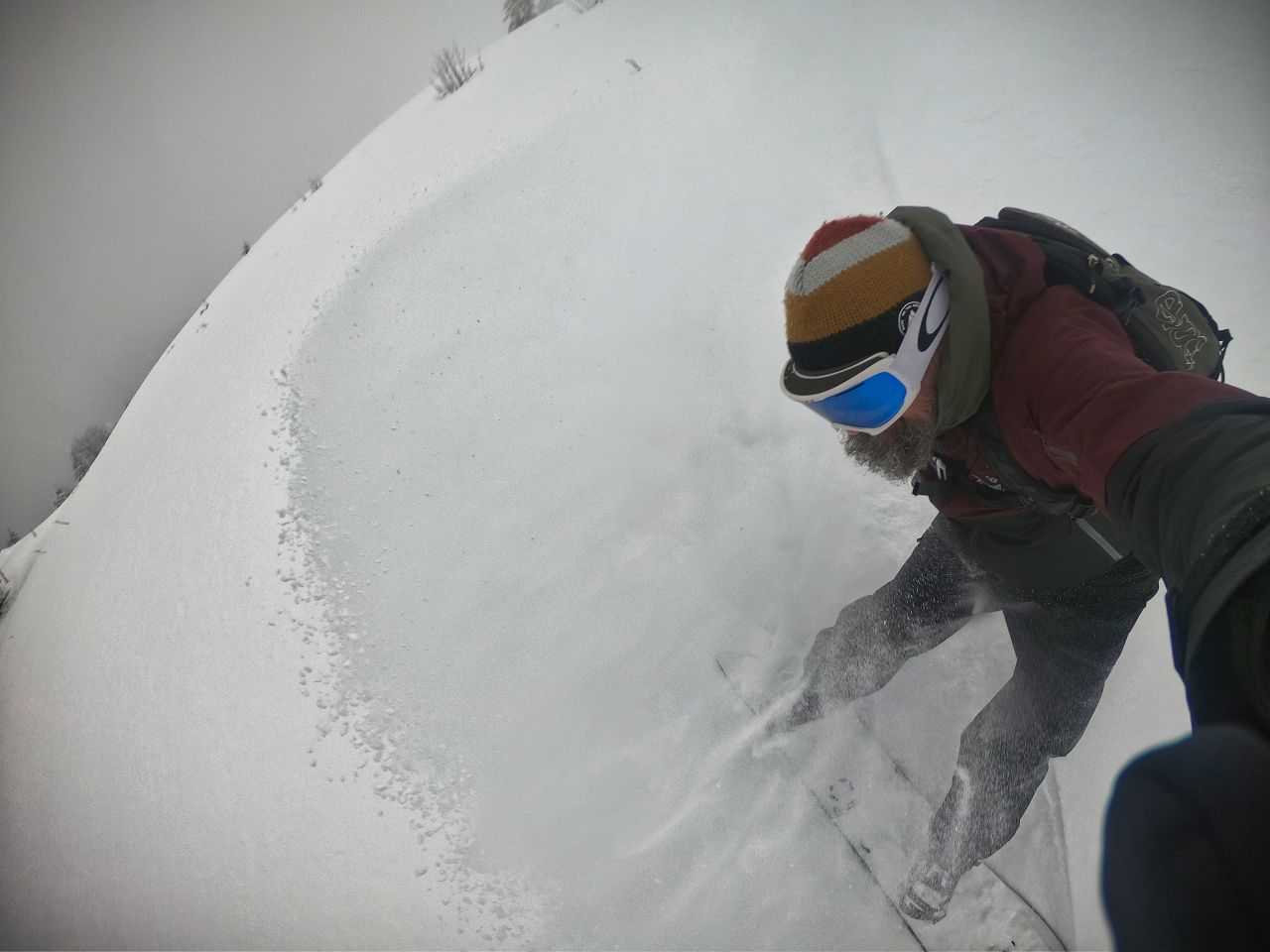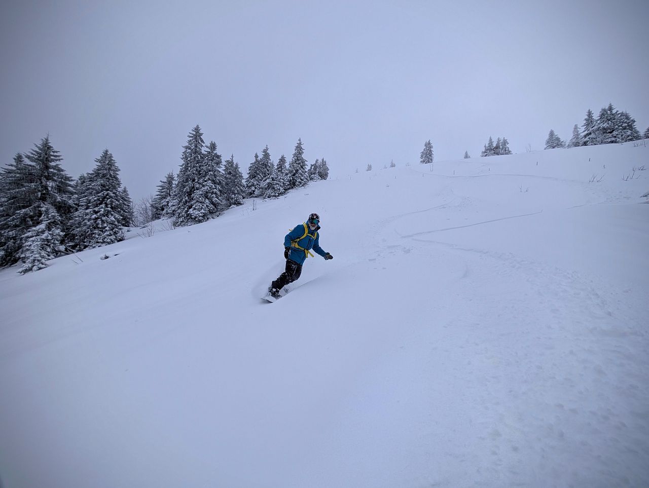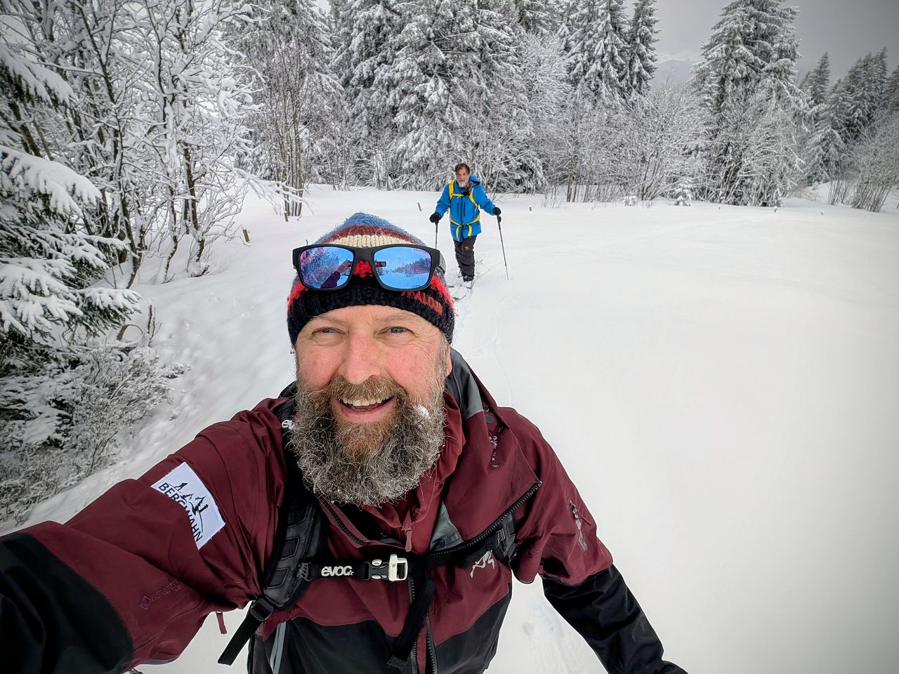 Heute begann der Tag mal wieder mit dem Splitboard. Zuerst ging es natürlich zum Lieblingsabfellbaum. Und weil der Aufstiegsbereich am Zeiger schon etwas verspurt war, sind wir zunächst im unverspurten Powder zum Seebach abgefahren.